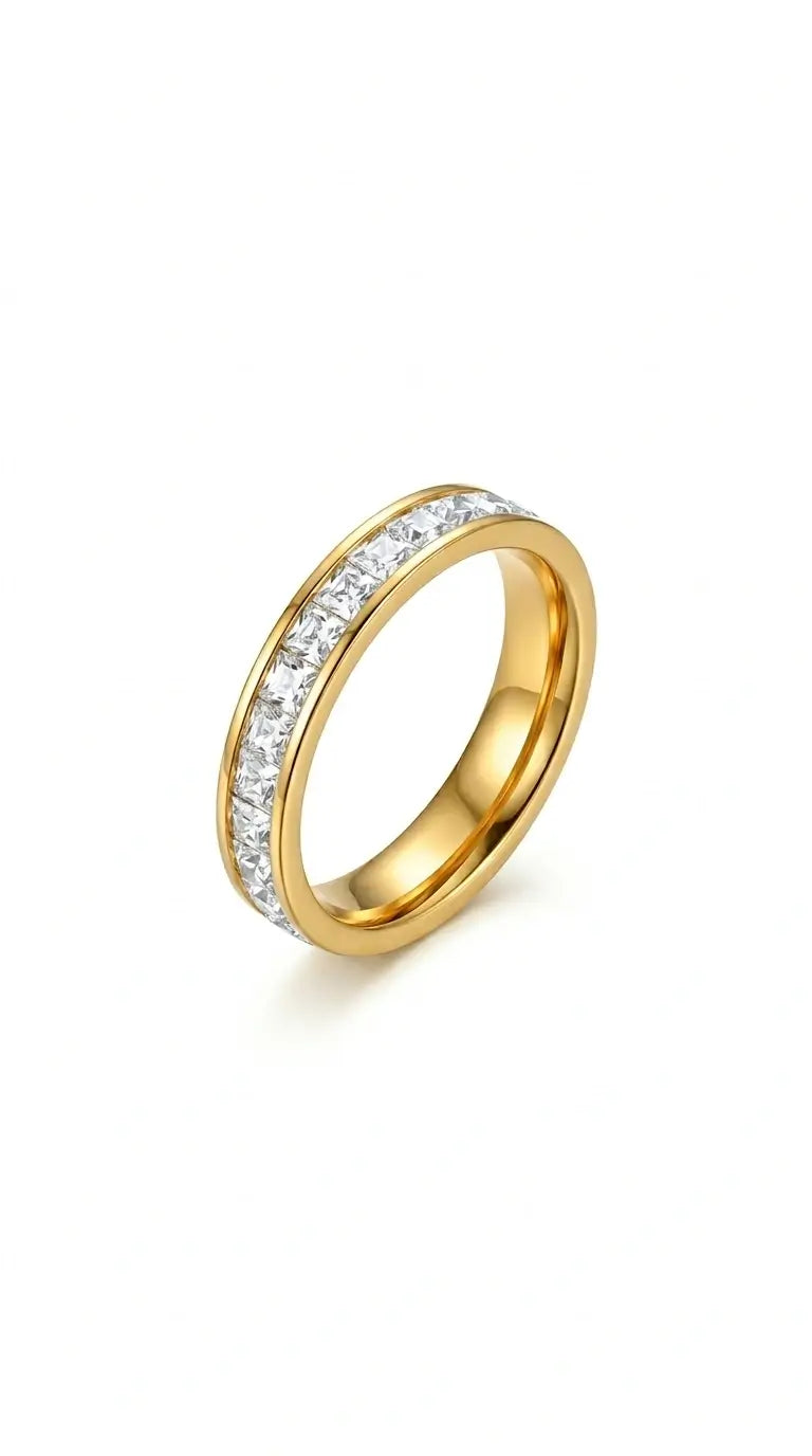 Minimal Crystal Gold Band Ring – Anti-Tarnish Elegant Ring for Women